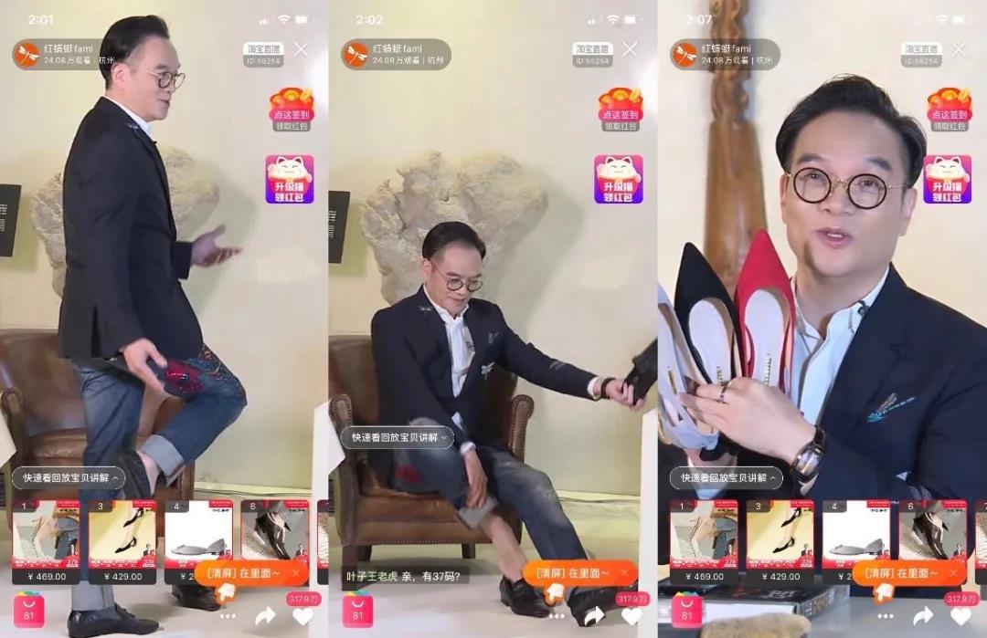 隔壁紅蜻蜓的創(chuàng)始人錢金波同樣瞄上了直播。三月八日,這位精致的董事長西裝革履,頭發(fā)梳地一絲不茍,然后對(duì)著鏡頭脫下了鞋襪,為網(wǎng)友們?cè)嚧┬印?/span>